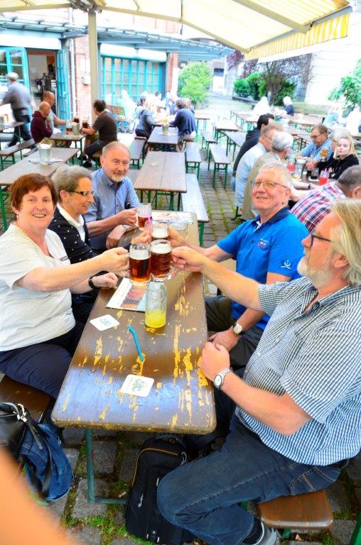 Für die Hofderer Kolpingmitglieder stand in Wuppertal ein weiteres Highlight auf dem Programm: Sie wurden von Mitgliedern der heimischen Kolpingfamilie Wuppertal-Barmen herzlich empfangen und mit einer «Bergischen Kaffeetafel» – einer traditionellen Speisenfolge – verwöhnt. Das von Kolpingmitgliedern selber gekochte Angebot war überaus reichhaltig: von verschiedenen Broten, Brotaufstrichen, Milchreis, Kompott, Waffeln bis hin zu Wurst- und Fleischwaren. Da kam die anschliessende Stadtbesichtigung zu Fuss gerade richtig. Und auch diese war «hausgemacht»: Der heimische Kolpingvorsitzende Lothar Dröse hatte eigens für den Schweizer Besuch einen Rundgang zusammengestellt! Die Stadtbesichtigung fand ihren Abschluss dann wieder zusammen mit den deutschen Kolpingmitgliedern in einem gemütlichen Biergarten bei einem kühlen Kölsch.