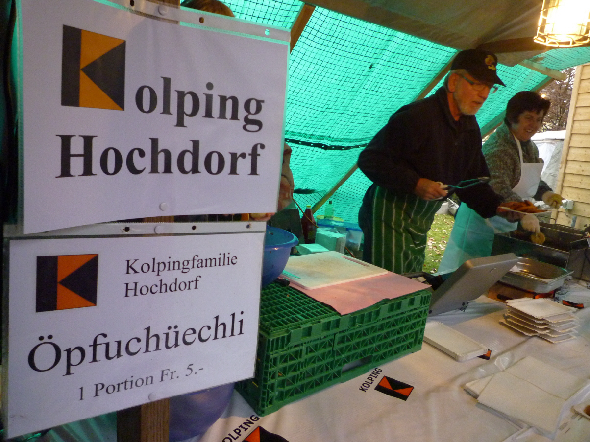 Seit über 25 Jahren bildet der Hochdorfer Wiehnachtsmärt einen Fixpunkt im Terminkalender unserer Kolpingfamilie. Mit dem Öpfuchüechli-Stand und der Glühweinbar tragen wir zur einmaligen vorweihnächtlichen Atmosphäre im Lunapark bei und erwirtschaften ausserdem einen substantiellen Beitrag für unsere Vereinskasse. Möglich wird dies dank vieler Vereinsmitglieder, die Äpfel für die Öpfuchüechli schälen oder dafür sorgen, dass feiner Glühweinduft durch den Wiehnachtsmärt zieht.