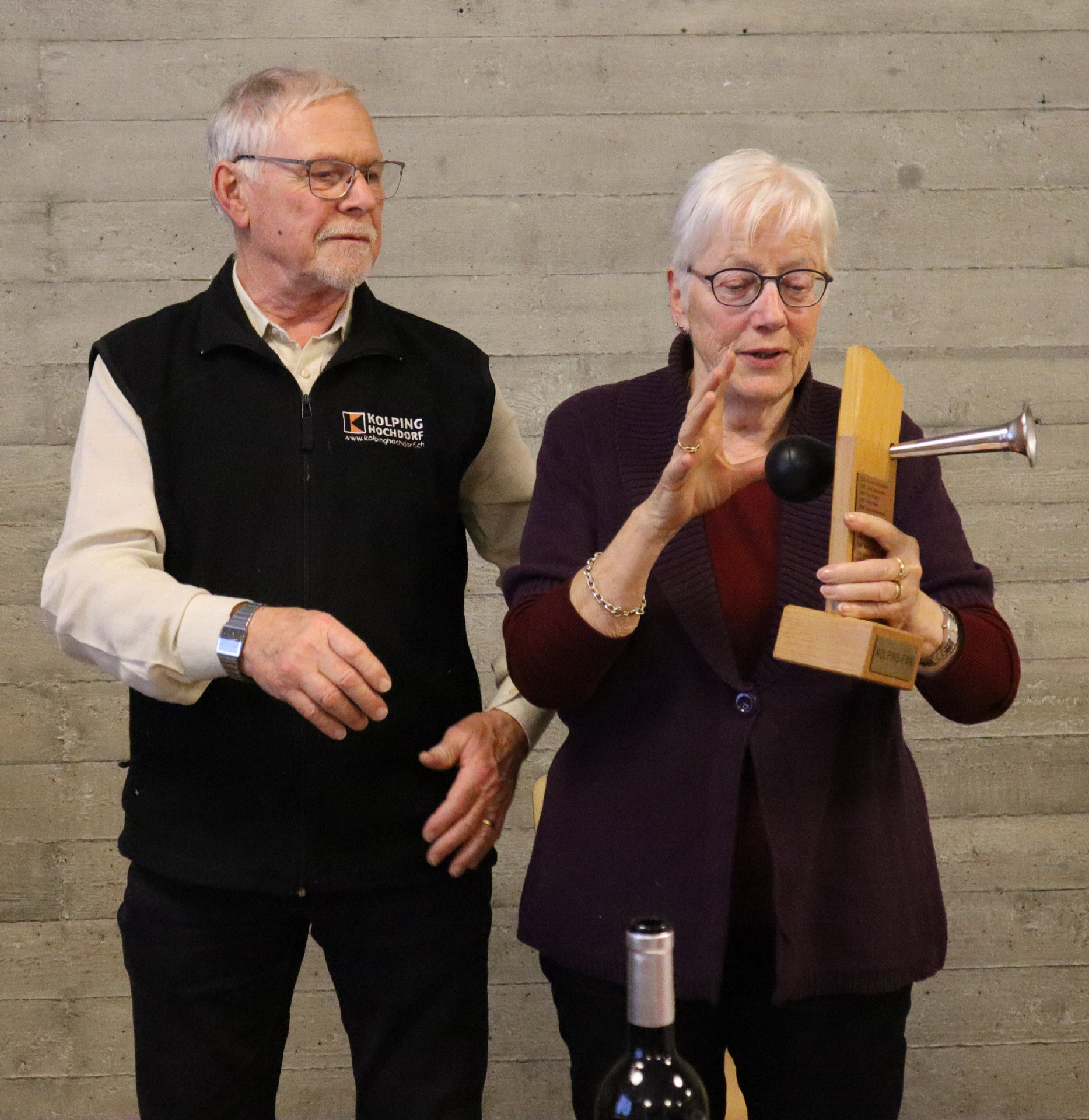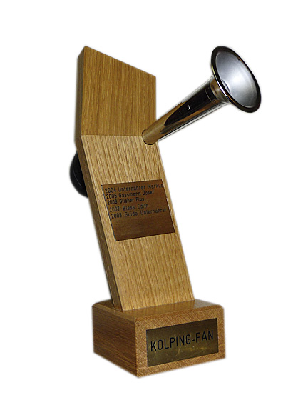 Der Wanderpokal wurde von Adrian Unternährer gestaltet. Die Hupe sollte die Preisträger ermuntern, weiterhin Ausrufezeichen zu setzen, sich einzumischen und die Zukunft der Kolpingfamilie Hochdorf mitzugestalten.