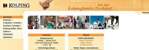 Fast vier Jahre lang konnten wir dieses Gratisangebot nutzen, bis Ende 2009 die Benutzerunterstützung dafür eingestellt wurde. Im März 2010 starteten wir dann mit unserer neuen Website, mit der wir uns auch heute noch im Internet präsentieren. Die veraltete Baukasten-Software verblieb auf den Servern von Kolping Deutschland, wo sie aber in letzter Zeit immer grössere Probleme verursacht. Deshalb naht nun ihr endgültiges Ende. Bis Ende Februar werden die alten Baukasten-Seiten definitiv vom Netz genommen. Wer vor der Abschaltung nochmal einen nostalgischen Blick zurück werfen möchte, findet die Seiten momentan noch unter folgendem Link: