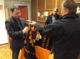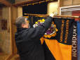 Nachdem eine erste angefragte Firma den Auftrag abgelehnt hatte mit dem Hinweis, die Fahne sei zu stark beschädigt und keine Reparatur mehr möglich, sind wir dann bei der Fahnen Stadelmann AG in St. Gallen St. Fiden doch noch fündig geworden. Bei strahlendem Herbstwetter machte sich am 3. November eine hochdorferisch-rumänische Delegation auf in die Ostschweiz um die neue-alte Fahne wieder abzuholen. Der sympathische Traditionsbetrieb von Geschäftsführer Markus Stadelmann hatte die Fahne soweit wieder hergerichtet, dass sie die kommenden Jahre im Fahnenkasten gut überstehen wird.