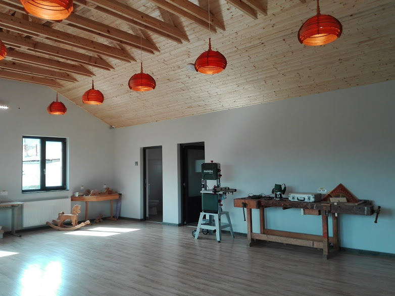 Aus diesem Wunsch heraus wurde diese Bastelwerkstatt erbaut, nach dem Beispiel eines ähnlichen Ateliers in Caransebes. Die Bauarbeiten in Oituz begannen im September 2017 und umfassten auch die Einrichtung eines Spielplatzes sowie das Anlegen von Parkplätzen und eines Gemüsegartens. Dies alles wurde möglich dank der Unterstützung der folgenden Spender: